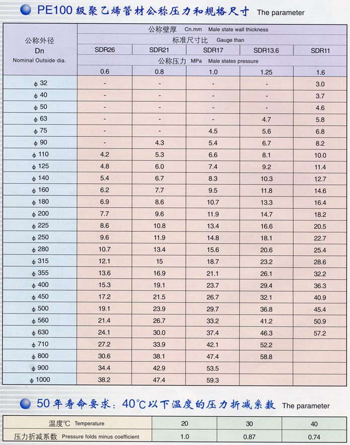 HDPE pipe materials use HDPE resin are made by high pressing. The products have many traits such as resistance ageing, high strength, good resistance to abrasion. As well as this trait, the pipe materials have some excellent comprehensive traits such as resistance to corrosion impact and low temperautre, self-lubrication, small flowing. The products can be used to transport such as supply water, pharmacy, chemical industry, metallurgy and sewage disposal, some corrosive mediums. such as mortar etc. and can be used to high construction water pipes. The specifications of HDPE pipe materials are the same as FRPP. The using tempatrue are -20℃ to +70℃.